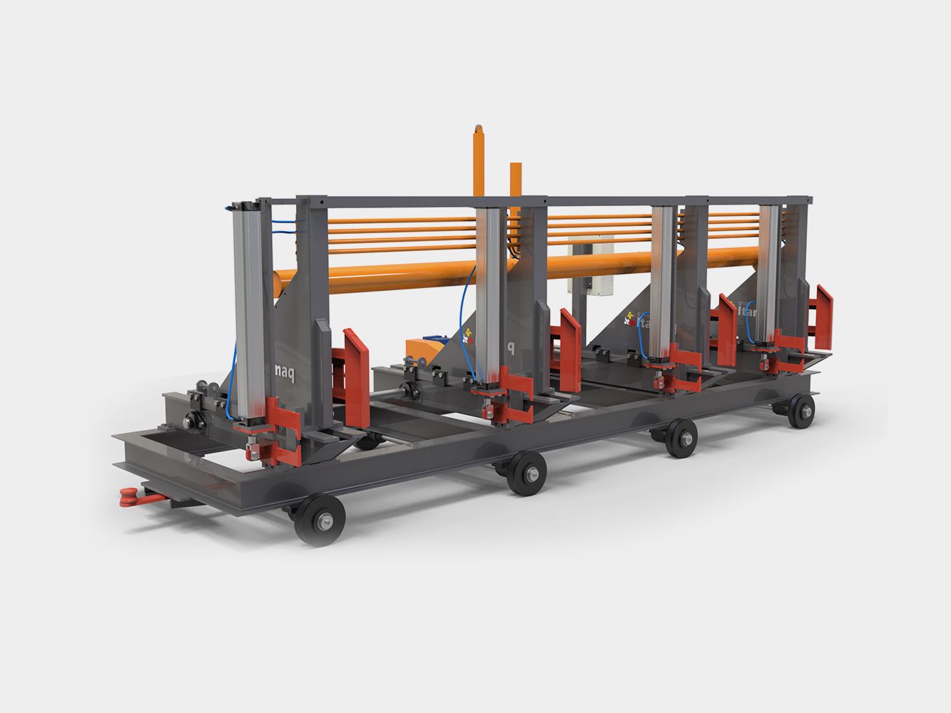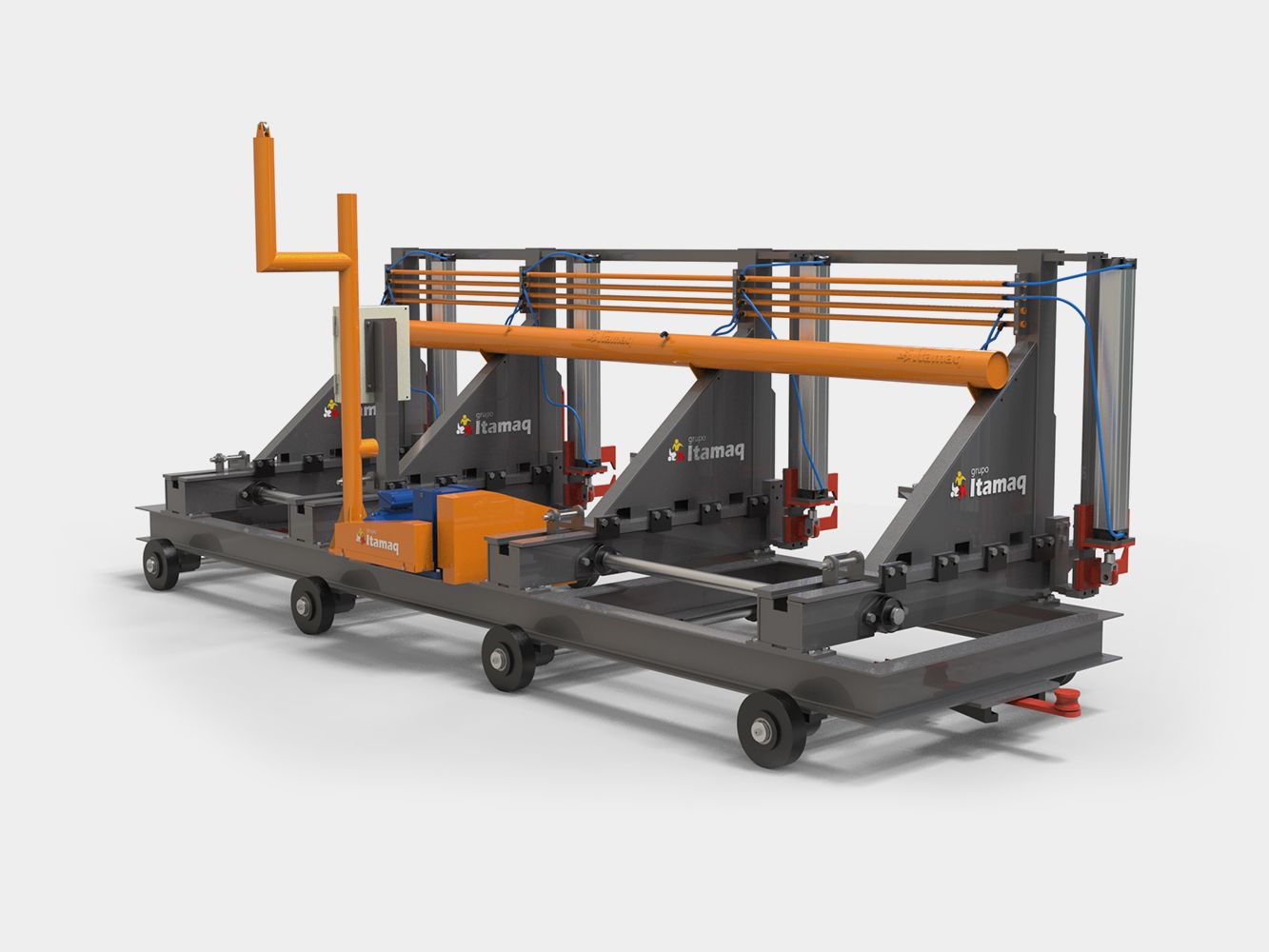 Desenvolvidos para receber toras de esteiras ou viradores e movimenta-las para que sejam cortadas na serra de fita vertical.