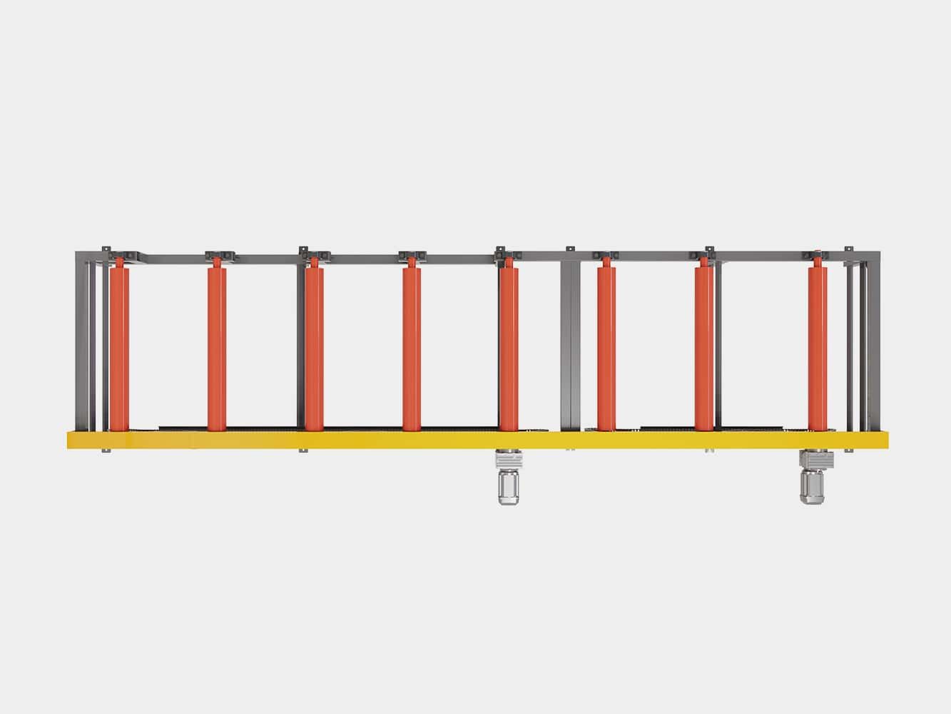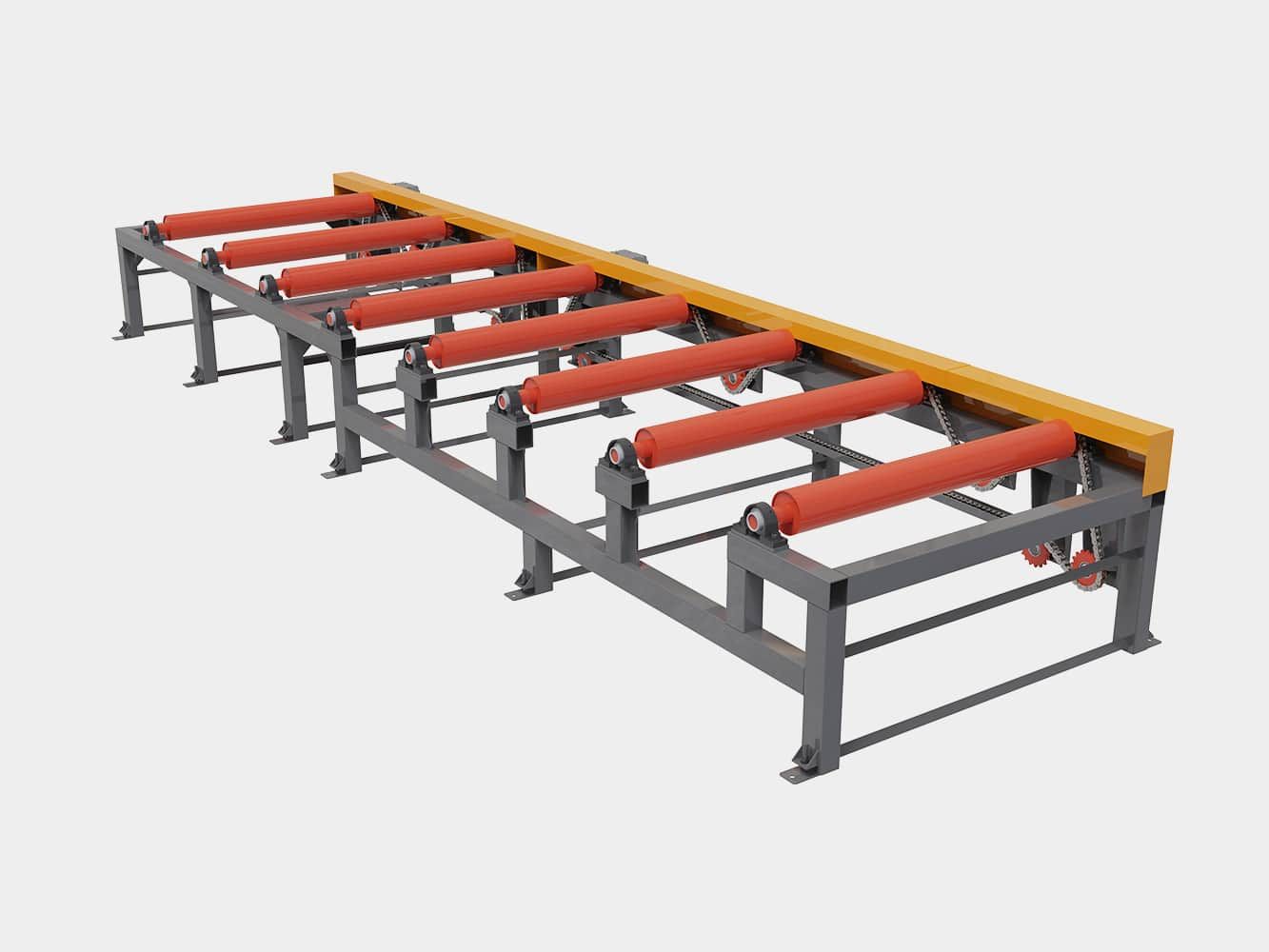 Desenvolvida para transportar, centralizar, alinhar blocos e vigas corrigindo posicionamento e fazendo alimentação automática da sequência de corte.