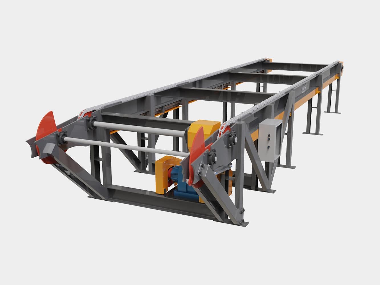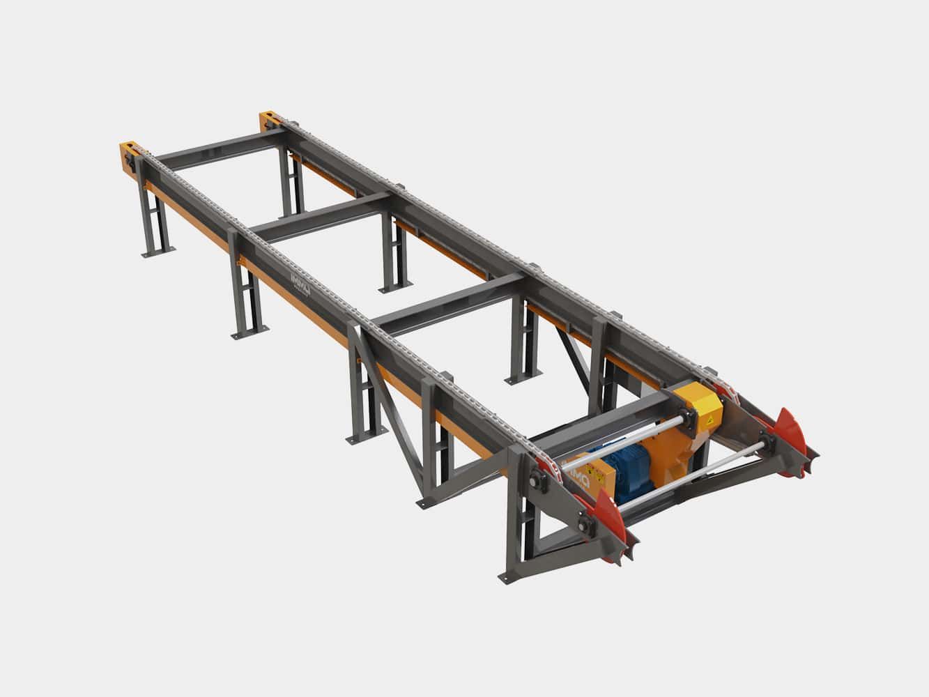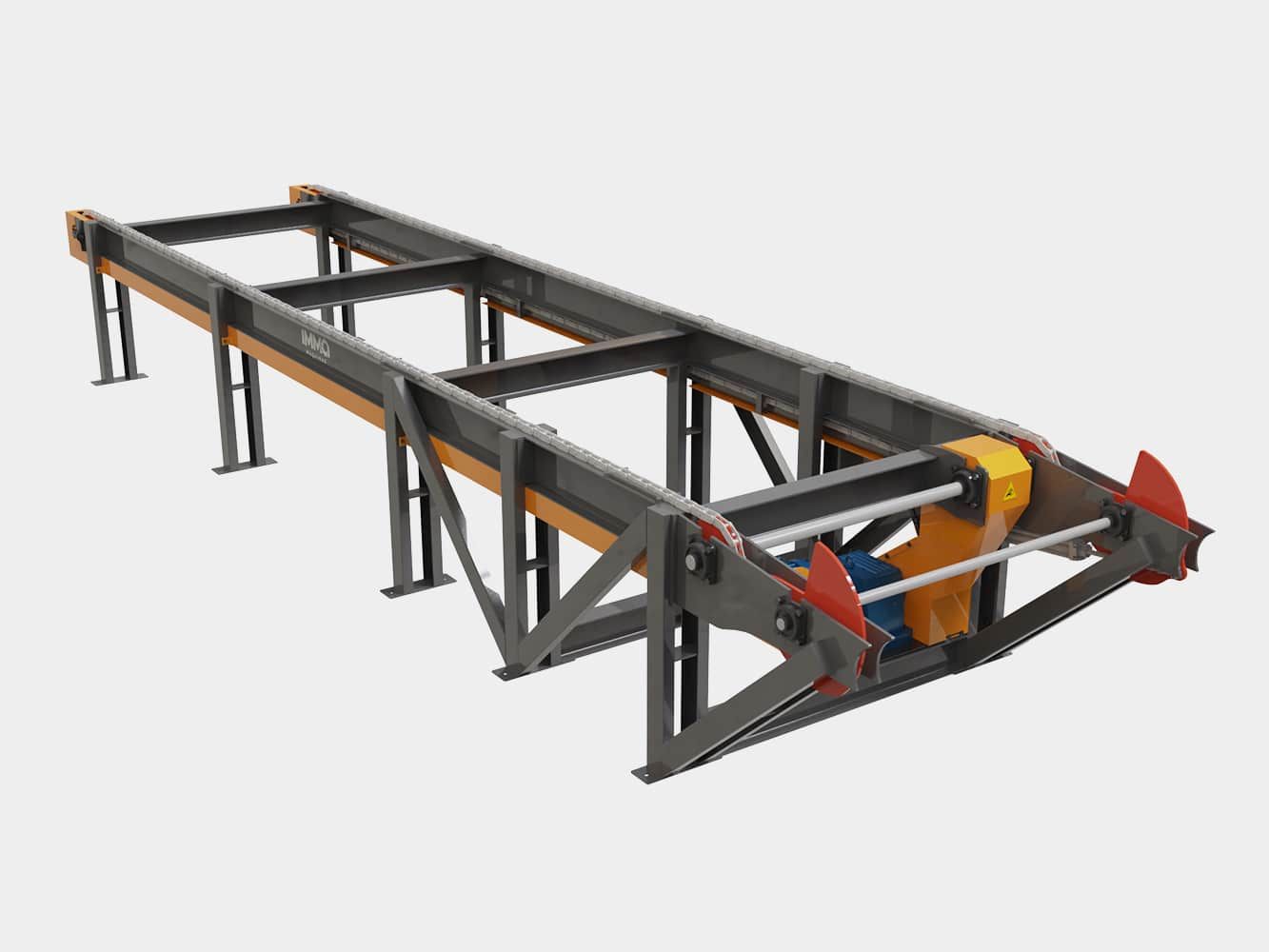 Desenvolvida para transportar, centralizar, alinhar blocos e vigas corrigindo posicionamento e fazendo alimentação automática da sequência de corte.