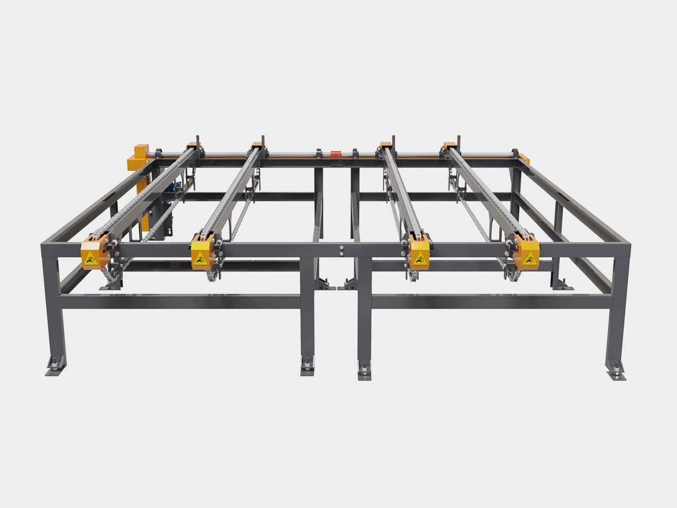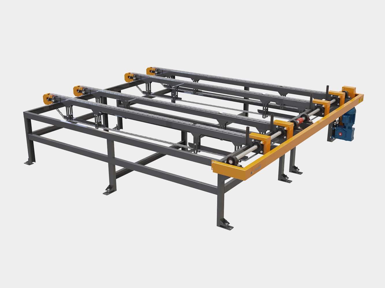 Desenvolvida para transportar, centralizar, alinhar blocos e vigas corrigindo posicionamento e fazendo alimentação automática da sequência de corte.