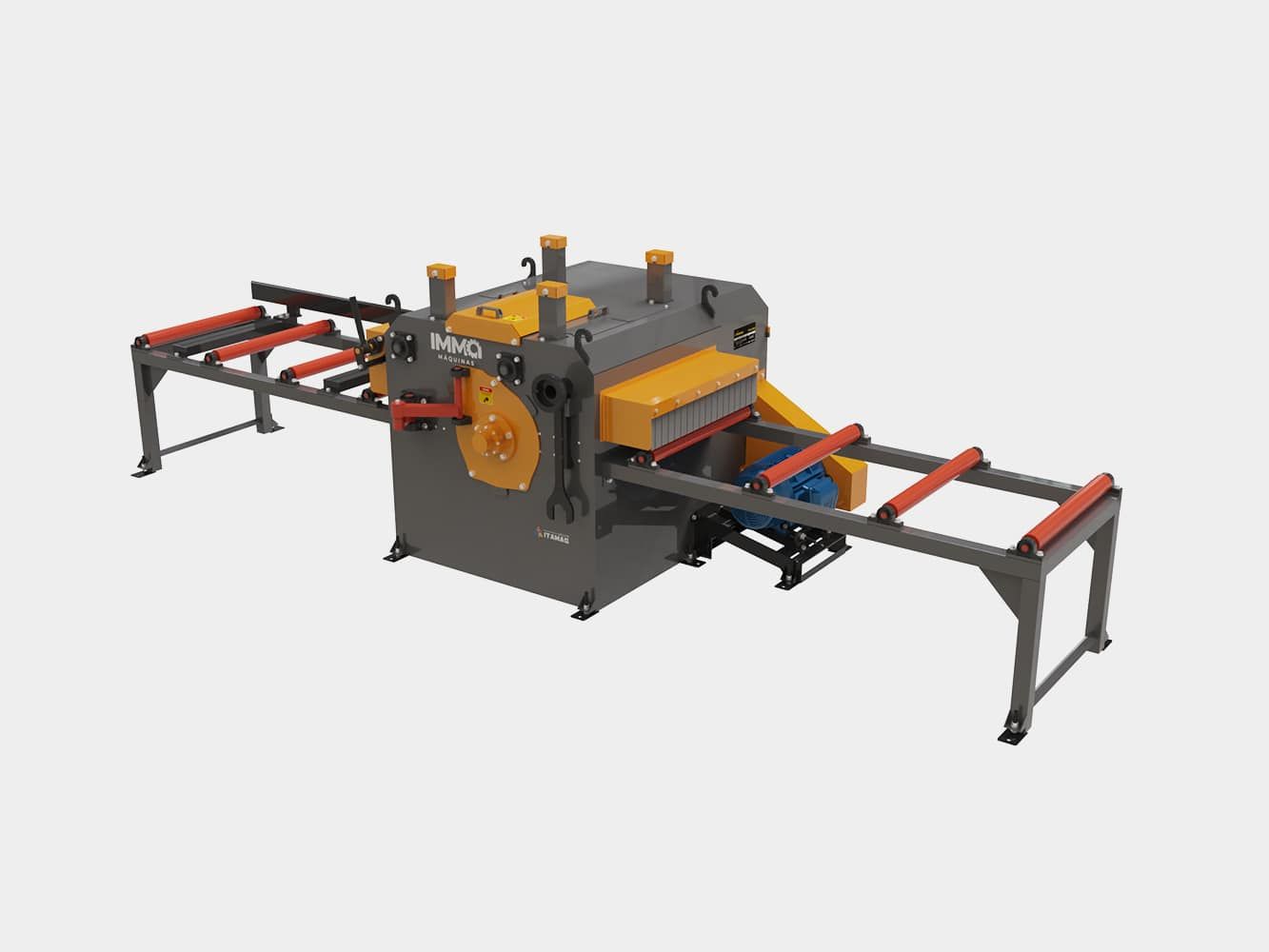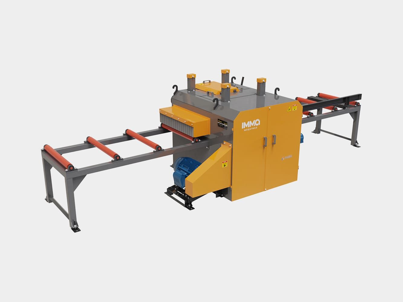 Esse sistema possui eixo fixo com ou sem serra móvel. Podem ser instalados conjuntos de serras com diversas medidas.