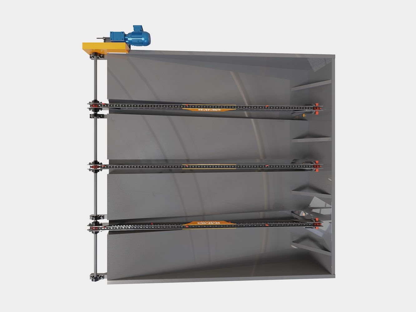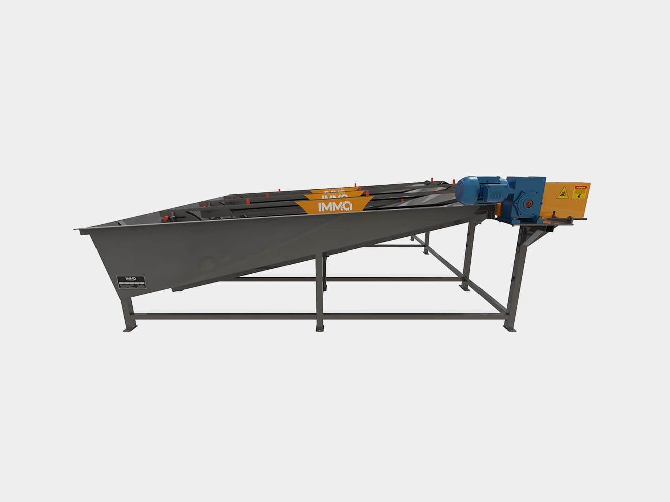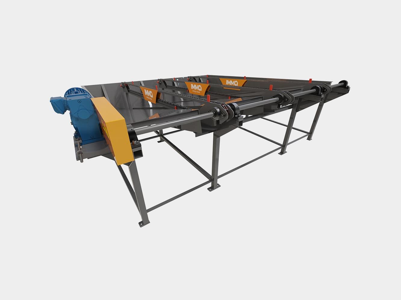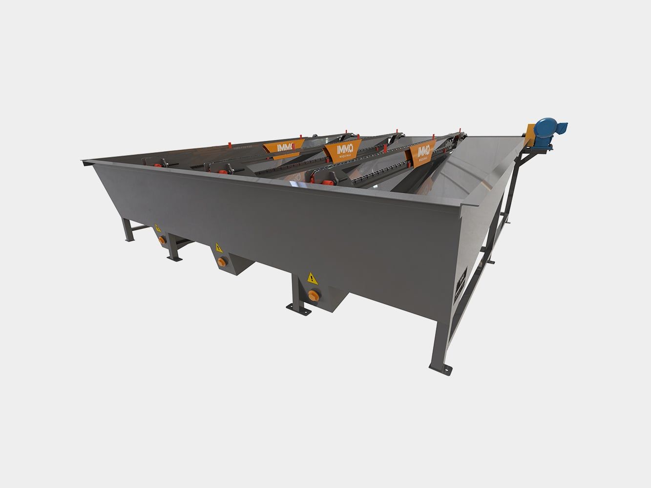 Desenvolvido para imunizar por imersão tábuas, vigas ou blocos de madeira, com sistema tracionado afim de manter o tempo de banho químico e escorrimento uniforme otimizando o processo.